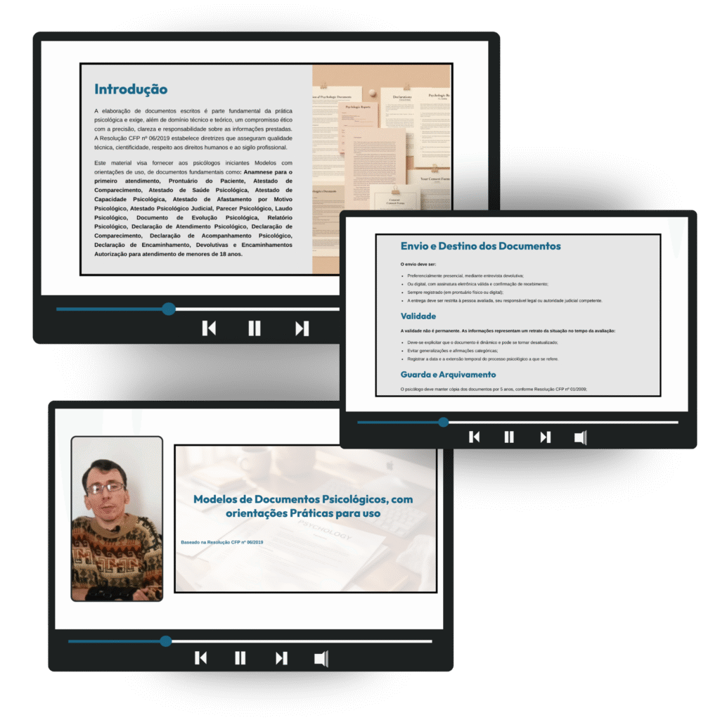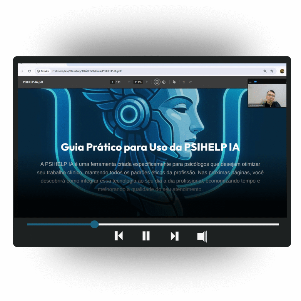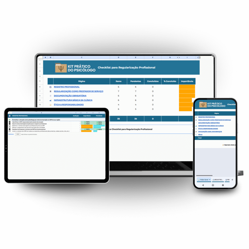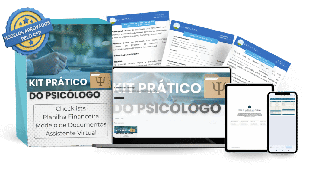 É um pacote completo que reúne documentos personalizáveis, planilha financeira, checklist de regularização e a assistente virtual PsiHelp IA, além de bônus exclusivos para organizar sua prática clínica com segurança e profissionalismo.