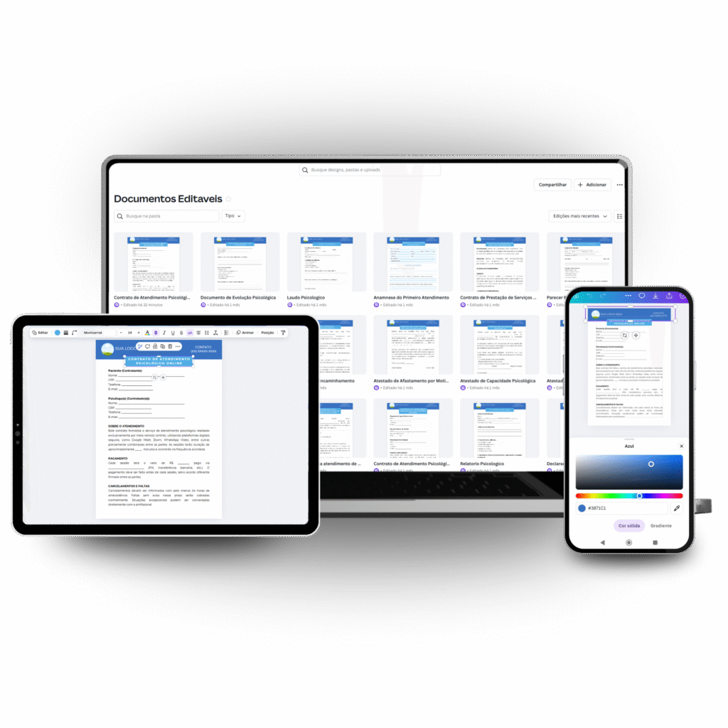 Liberação instantâneaModelos prontos e 100% editáveis em Canva, Word, Google Docs e PDF. Inclusos documentos de anamnese, contratos, termos e relatórios para todas as etapas da jornada do paciente. Atenda com segurança e profissionalismo, sem retrabalho!
