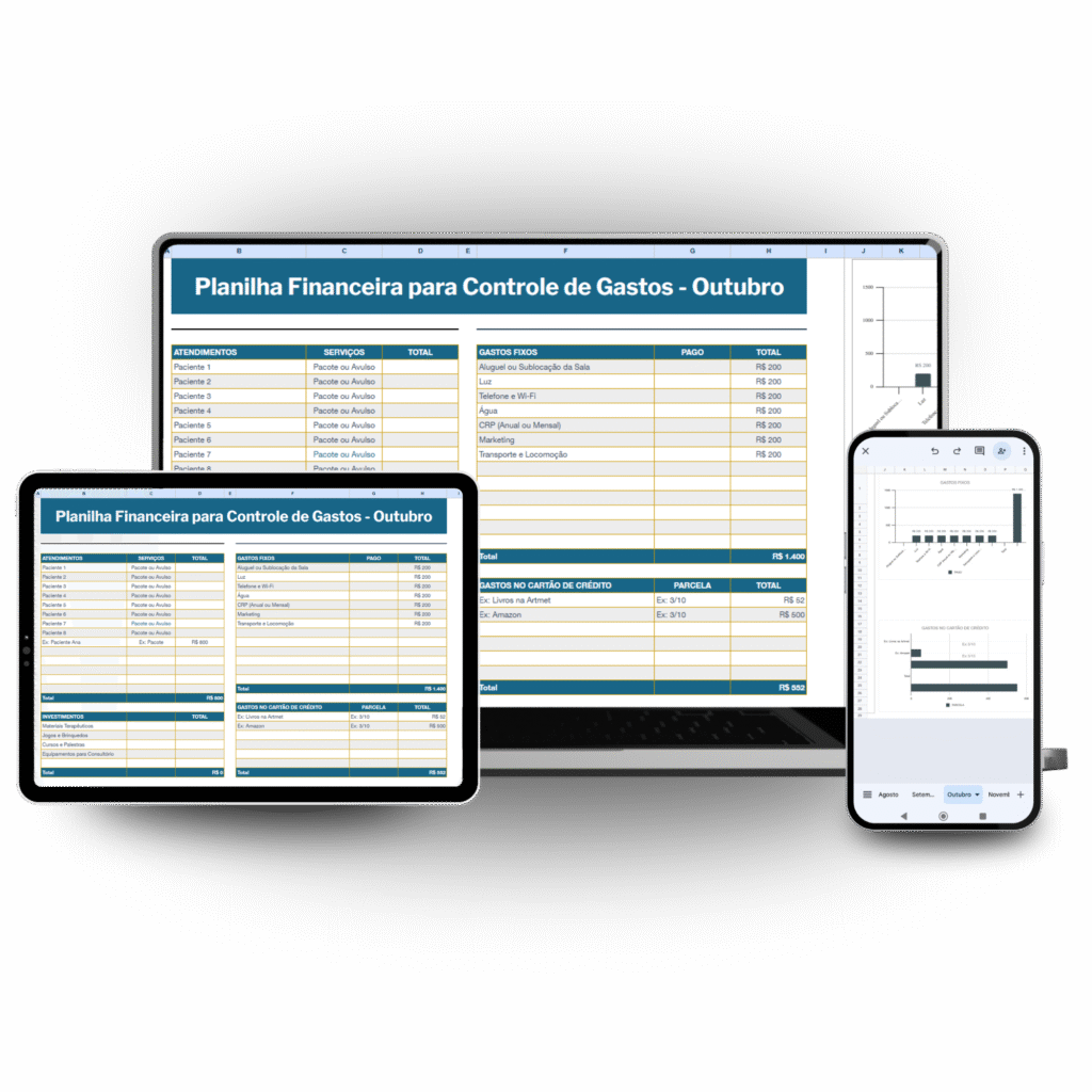 Planilha automatizada com 12 abas mensais, cálculos prontos e gráficos de acompanhamento. Áreas para registrar entradas, saídas, despesas e investimentos. Visualize seu fluxo financeiro e precifique com confiança!