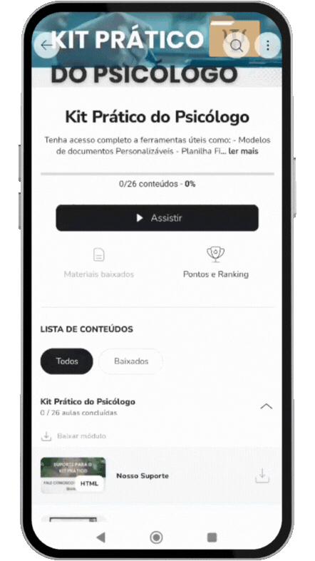 Acesse sua conta Hotmart → Minhas compras → Área do Psicólogo – Kit Prático e visualize os módulos.